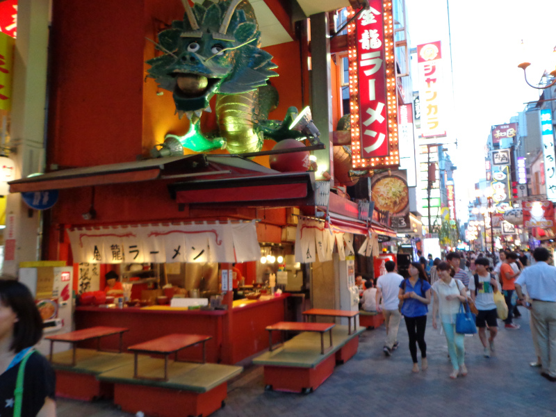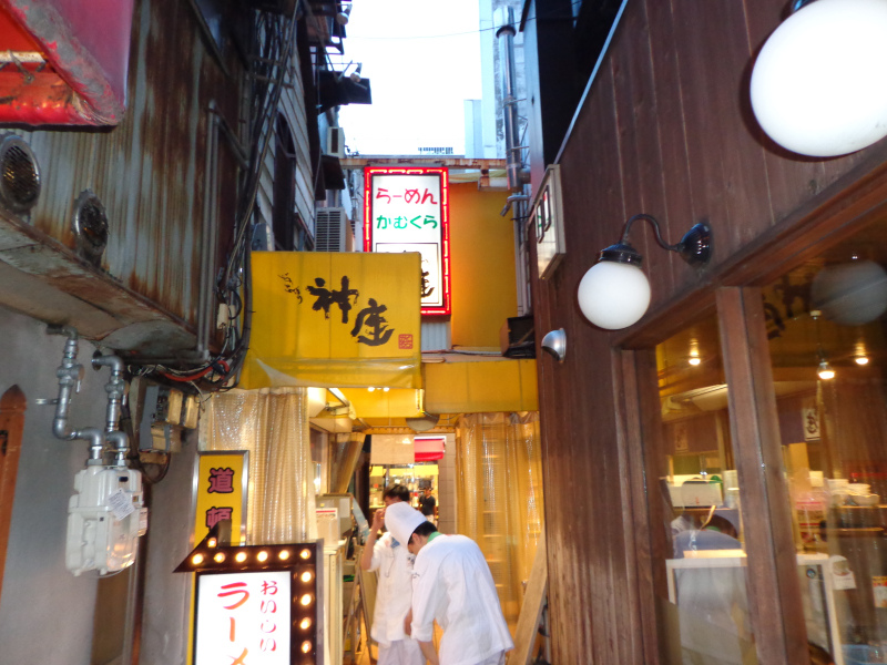 走道頓掘商店街.遇到金龍拉麵.旁邊是四天王拉麵.中間的小巷子就是今天要吃的神座拉麵