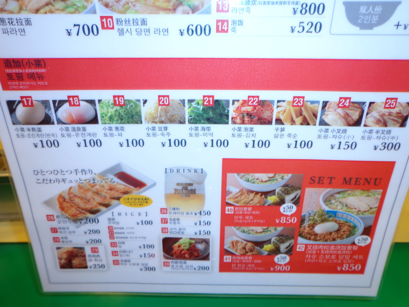 上面選擇拉麵.下面選擇加菜及配菜