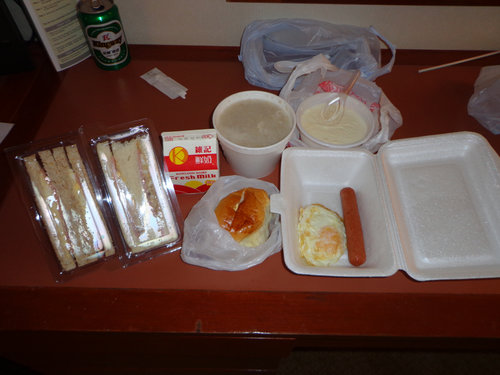 八八就在附近買早餐上酒店吃了