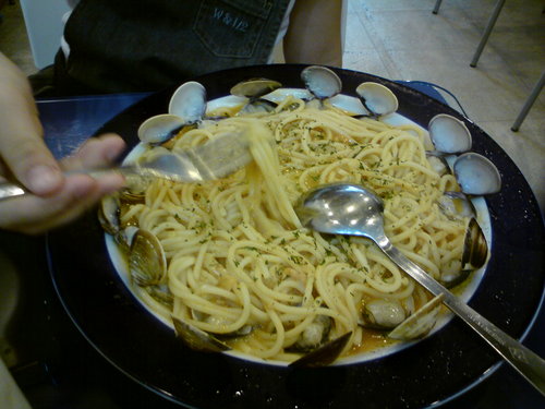 我給他點了一個義大利麵